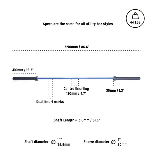 A medium-light knurl won't chew your hands up when power cleaning, but it's complemented with centre knurling for a better grip when squatting. Featuring both weightlifting and powerlifting marks, hand positioning is made easy for whatever movement you're doing that day. Lightly ribbed sleeves help keep your weight plates from shifting during your workouts.
