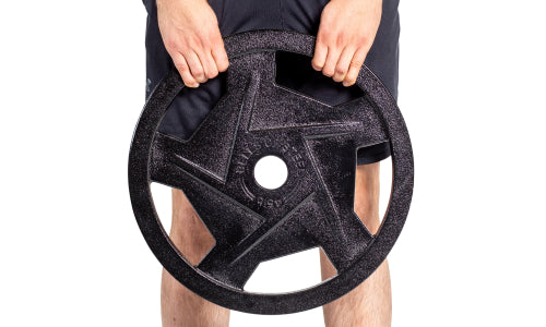 The Mighty Grip Olympic weight plates feature a beautiful, ergonomic design with an ultra-durable black powder coat for superior toughness and resistance to chipping.