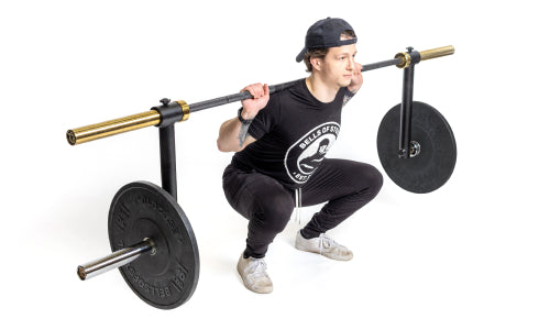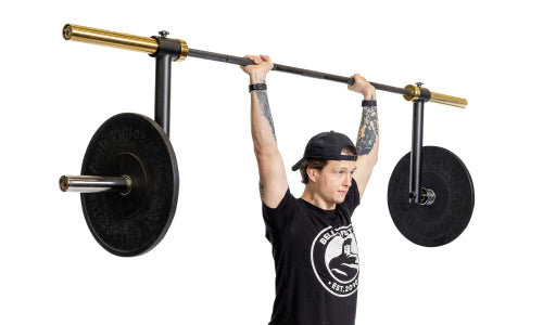 Cambered Bars are often cumbersome to move and store, lack proper knurling, and cost a lot of money. Or, you can just slide the Camber Bar Attachment over the sleeves of your Olympic bar, lock them, and add your weight plates. Presto change-o!