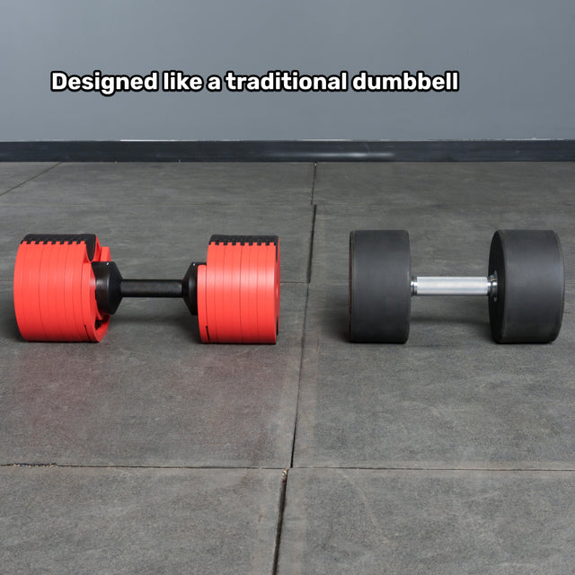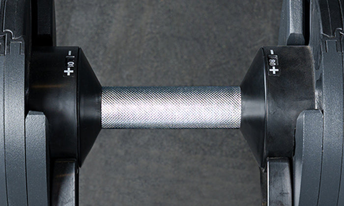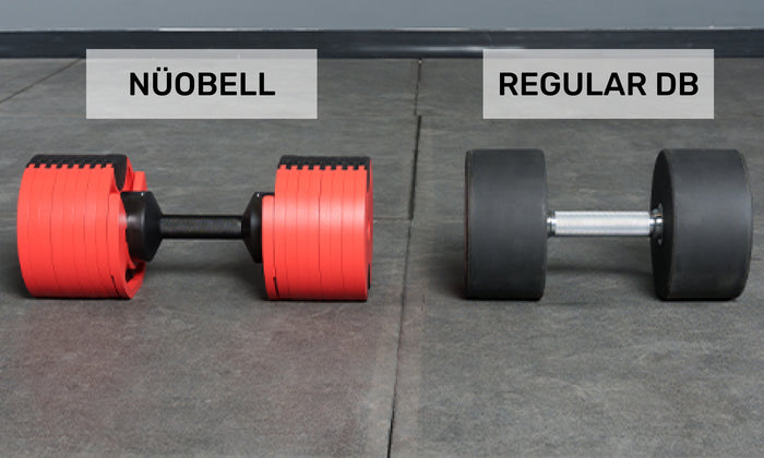 A quick look online. and you'll find all kinds of adjustable dumbbells with rubber or foam-coated handles, and in awkward shapes. Not here, bucko—the NÜOBELL is a step above. With its medium-knurled handle and patent-pending design, it actually feels like a traditional dumbbell.