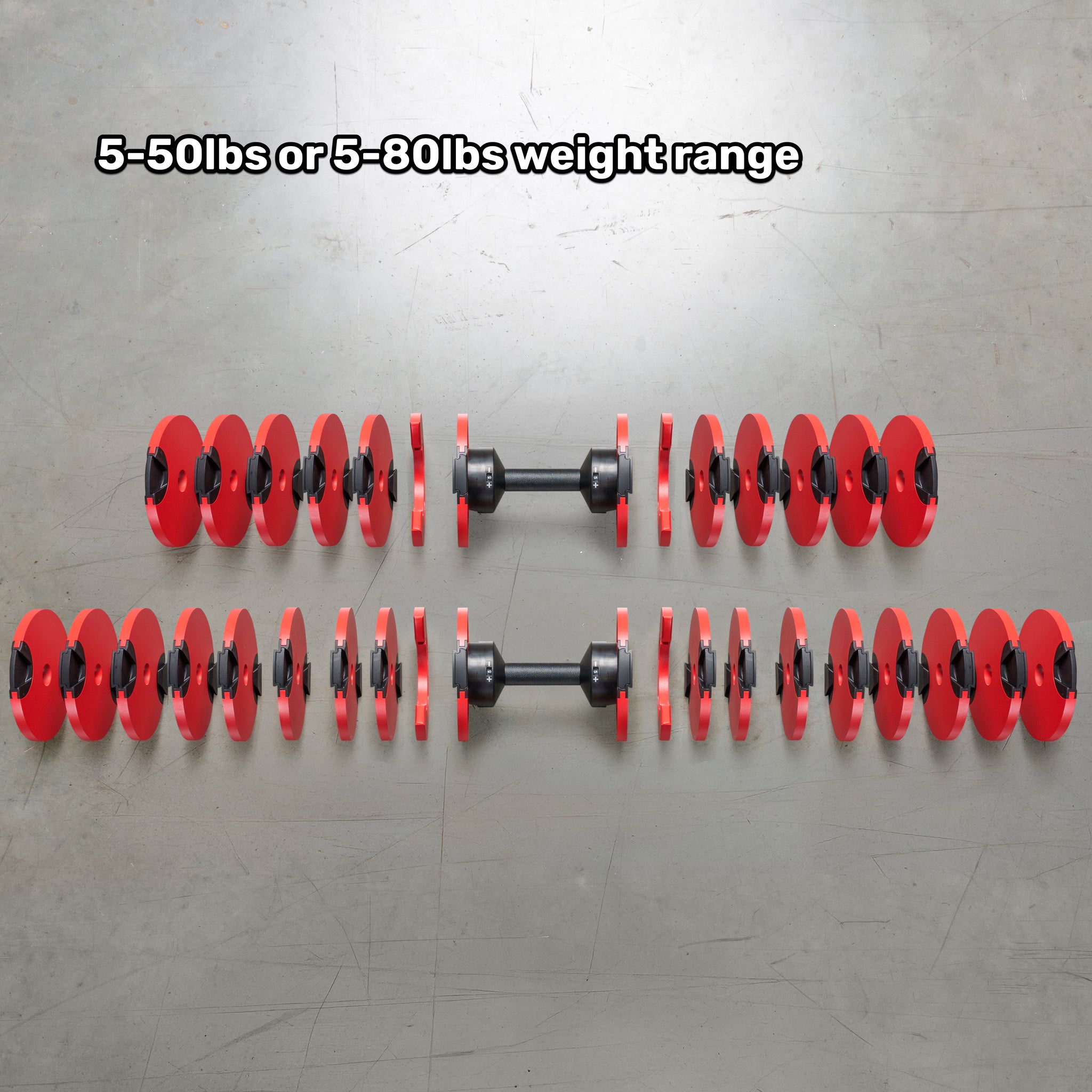 5-50 lb or 5-80 lb dumbbells replace an entire rack with one compact pair. Next-level training versatility from warm-ups to heavy sets — ideal for shared and progressive strength training.