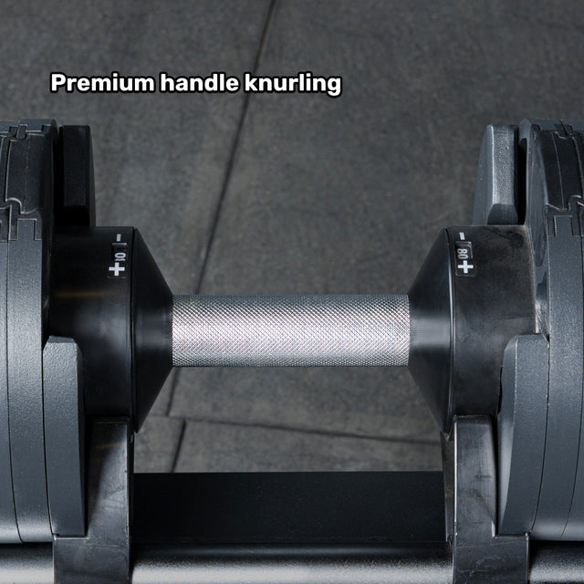 Engineered with a natural silhouette and balanced weight distribution for lifts that feel like fixed dumbbells — without the awkward bulk of competitors’ adjustables.