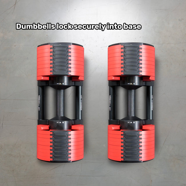 The included base cradles keep the dumbbells steady during weight changes and prevent rolling — helping protect your floors, benches, and equipment.