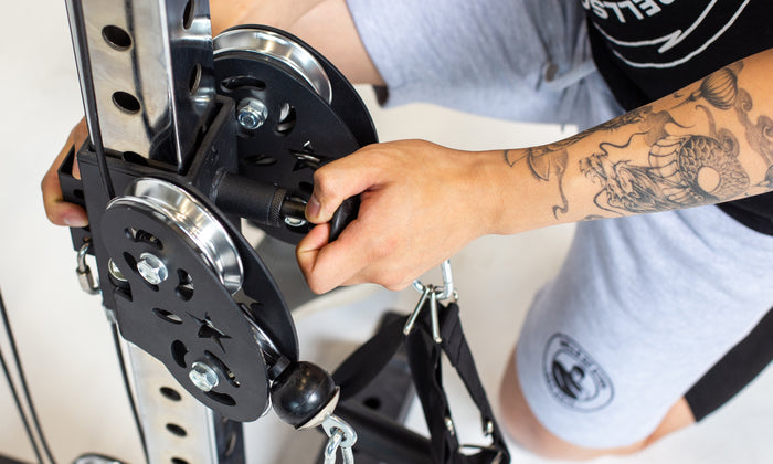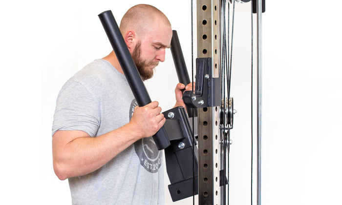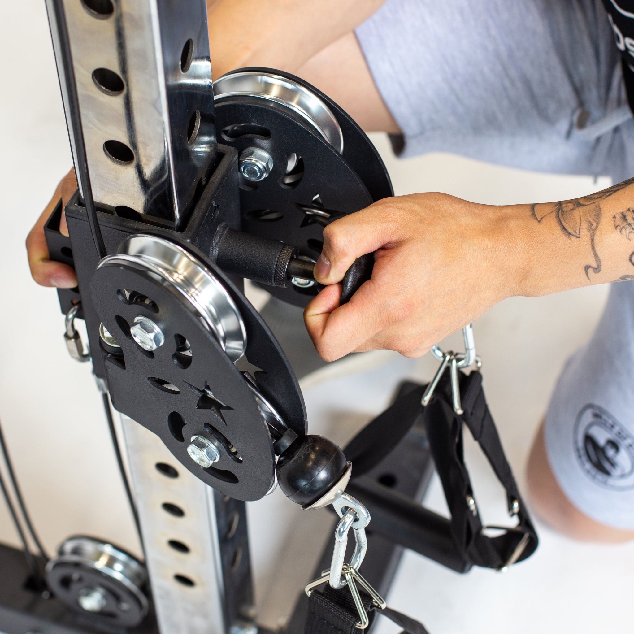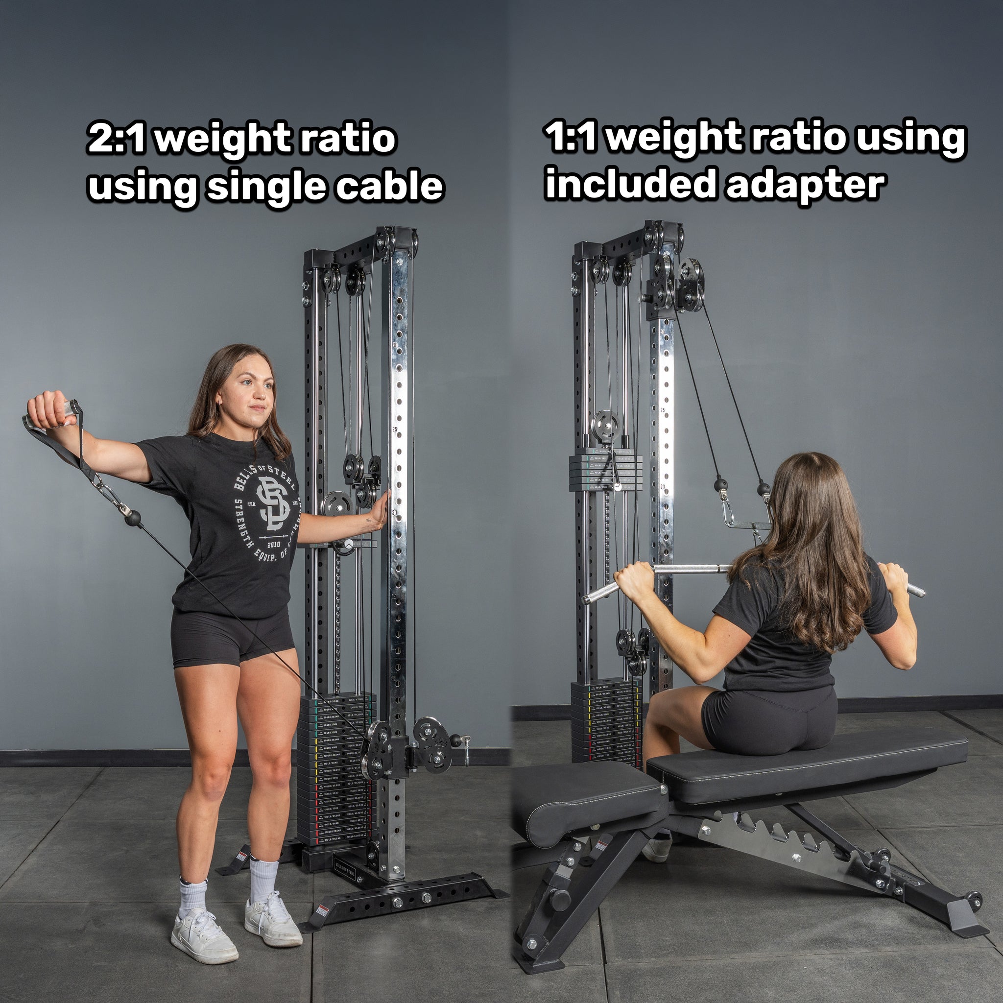 Dual Nylon Adjustable Handles on the upright with 30+ height settings create... 30, carry the 1...endless possibilities! And with the 2-1 Cable Adapter, connect both cables to upgrade the pull ratio from 2:1 to an incredible 1:1 ratio for heavy rows and more.