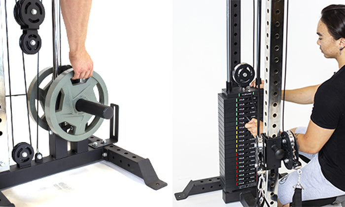 Olympic Weight Plate loadable sleeves keep costs low and possibilities high, while the 210-pound Weight Stack version is the crème de la crème of convenience.