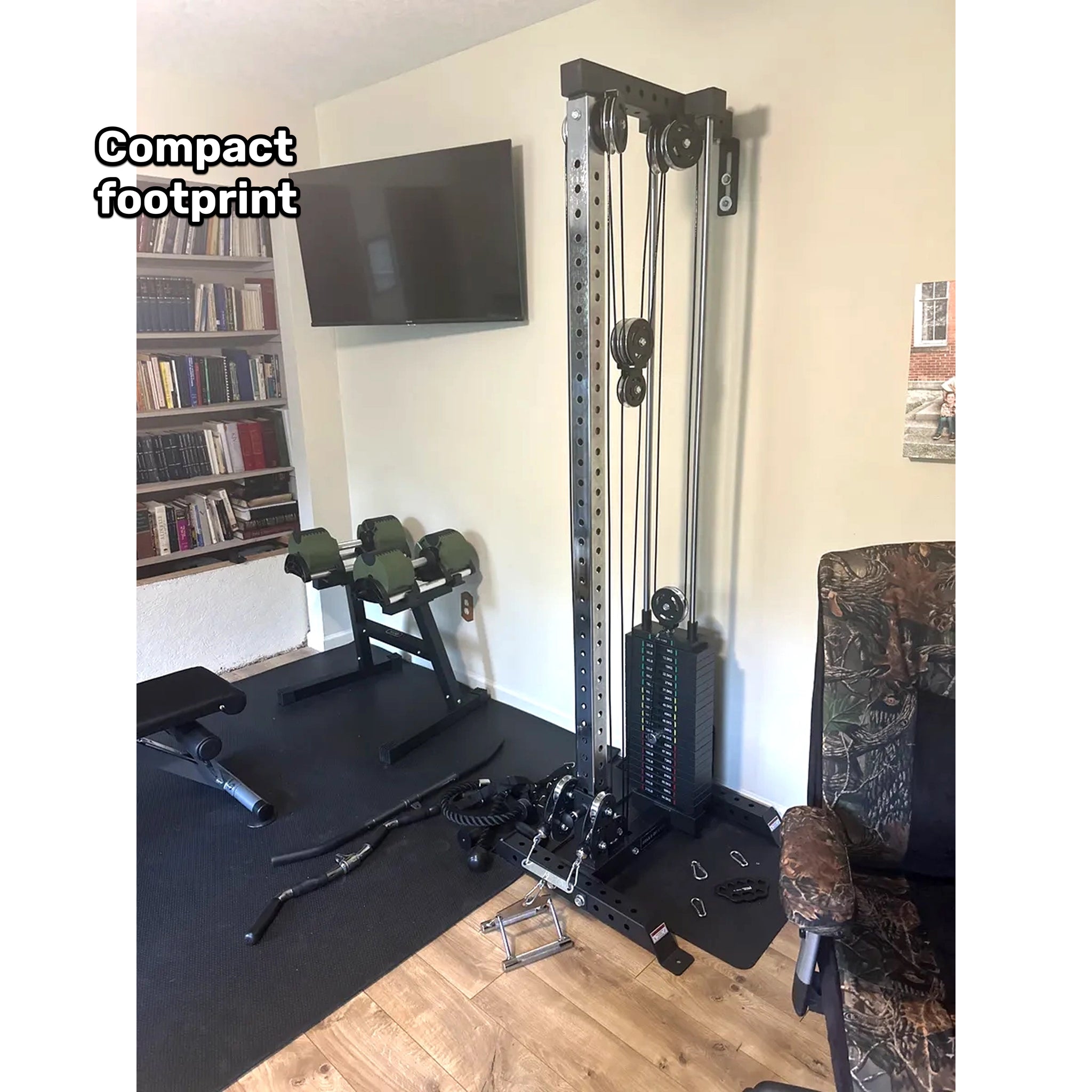 Fits into a footprint under 2.5′ × 2.5′ while offering the same full-body training that most cable towers require 3–4 times the space to deliver. Perfect for home gyms with limited square footage.