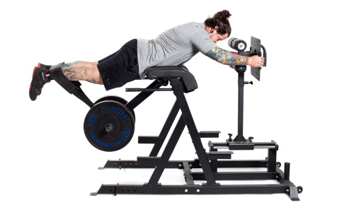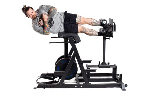 The Reverse Hammer is two essential products for your home gym - Reverse Back Extension & Glute Ham Developer (GHD) - combined into one, at a fraction of the cost (and space) of separate machines. The fusion of the Reverse Back Extension machine and Glute Ham Developer (GHD) is a Bells of Steel original design and was engineered in-house.