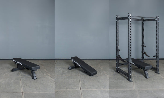 Standalone flat, makeshift incline, power rack drop-in with converter crossmember. Choose the setup that works for you.