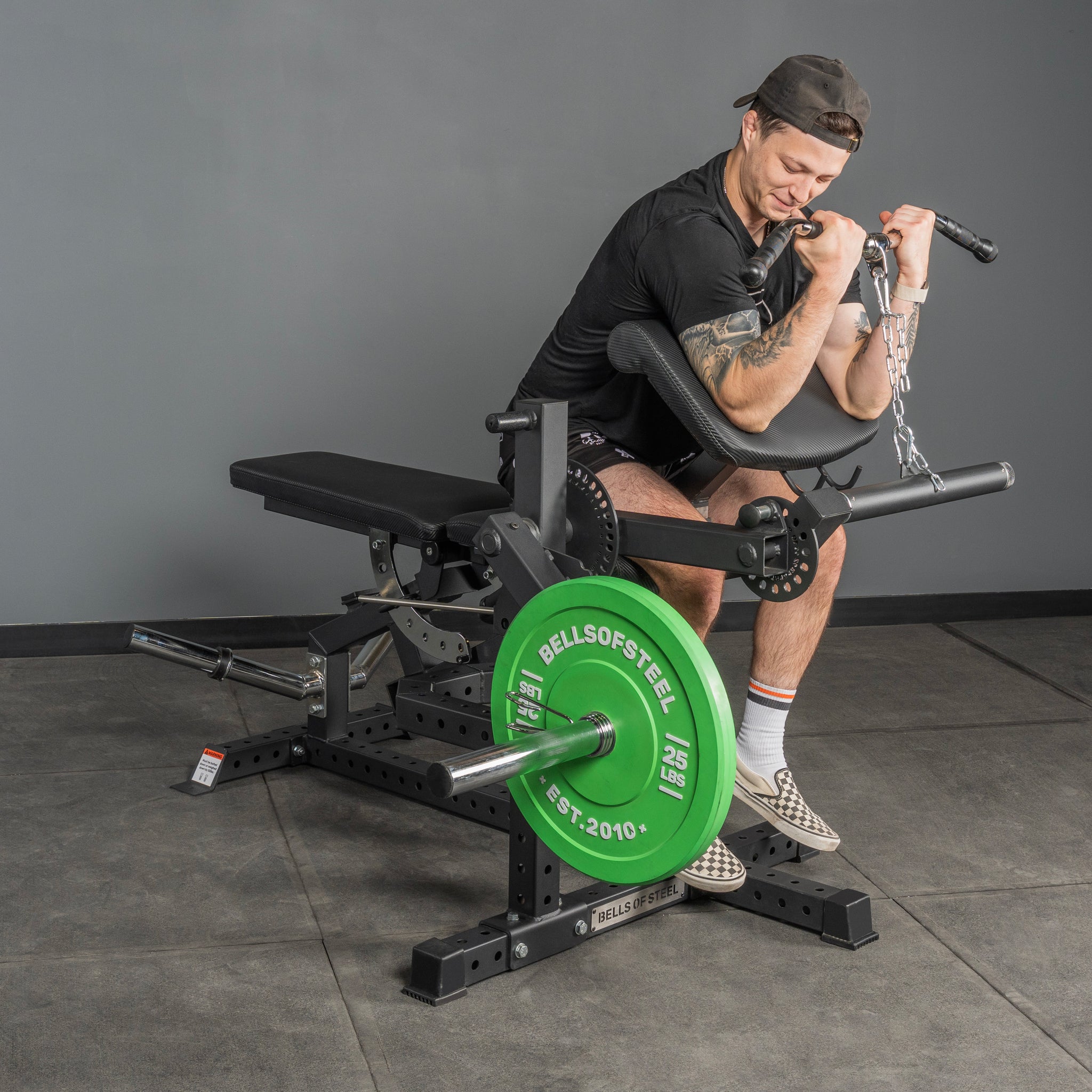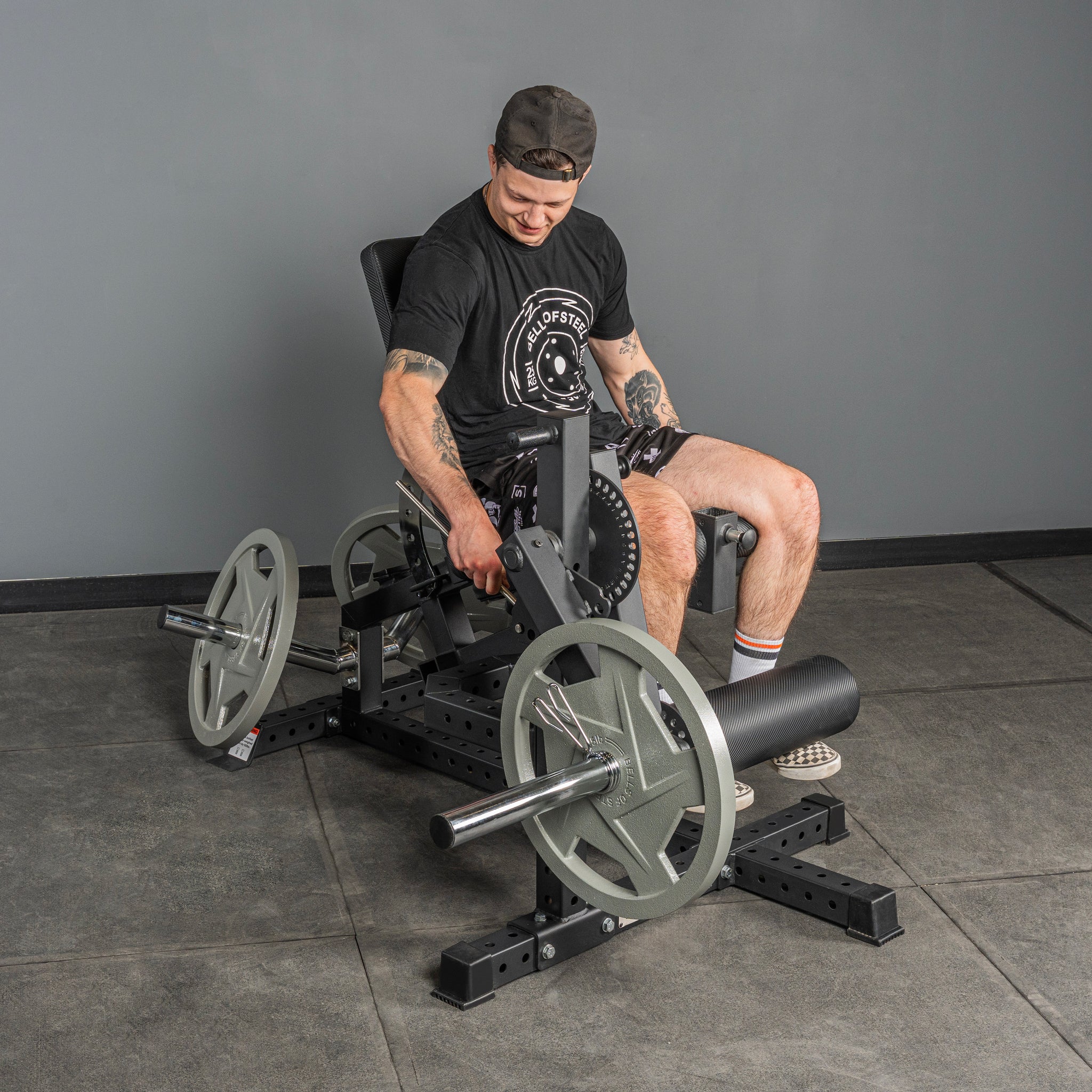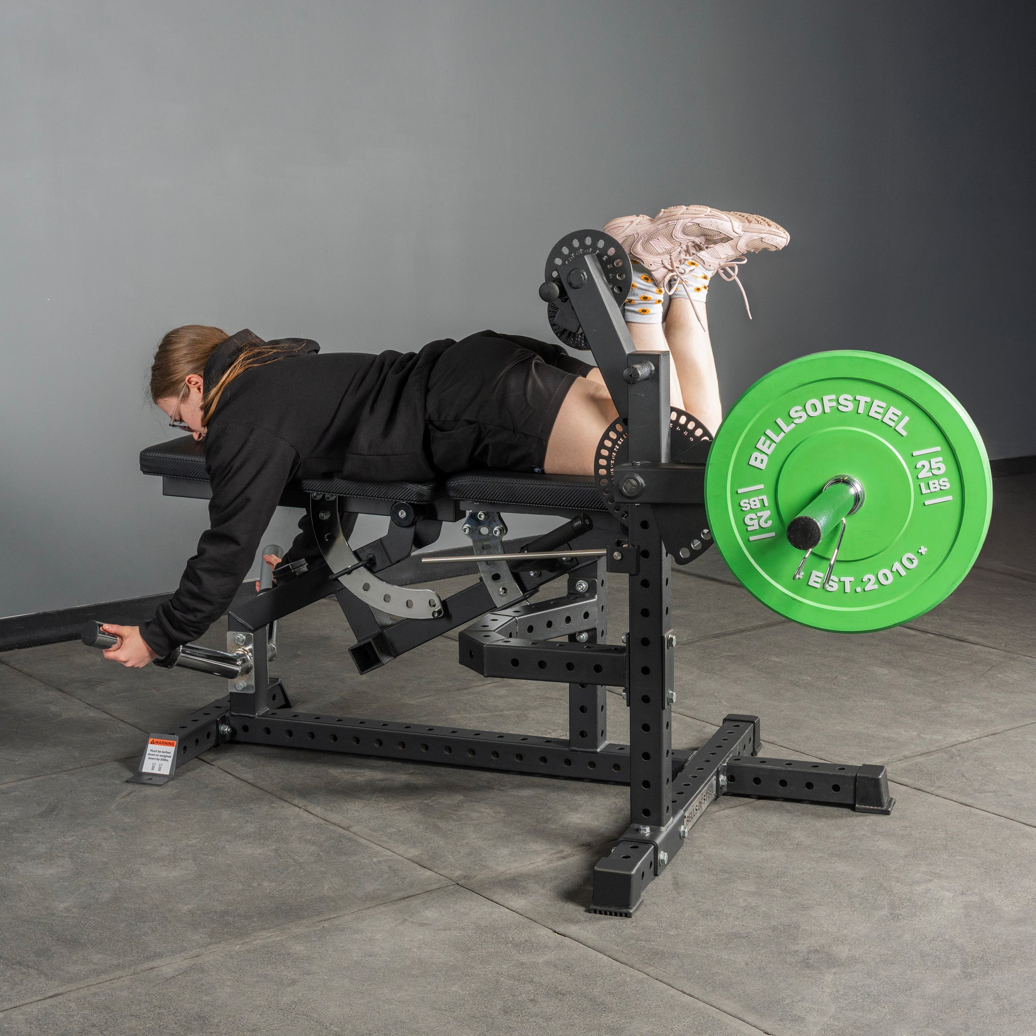 • Multi-Purpose Design → Switch seamlessly between leg extensions and prone or seated hamstring curls on one compact, plate-loaded machine.