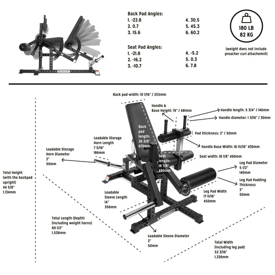 • Preacher Curl Attachment (Optional) → Expands your training beyond leg day with targeted biceps work. Carabiner-compatible so you can use your favorite cable handle (not included) for a personalized setup.