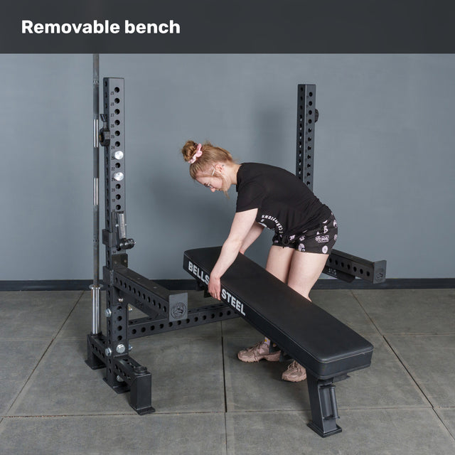 • Add safeties when you want → Run it minimal or add spotter arms for solo training. Your setup, your rules.