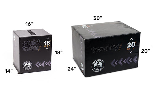 These boxes are the nesting dolls of your home gym. The smaller 14" x 16" x 18" box nestles nicely inside the 20" x 24" x 30" box for maximum space efficiency. Talk about versatility and efficiency, babyyyy!