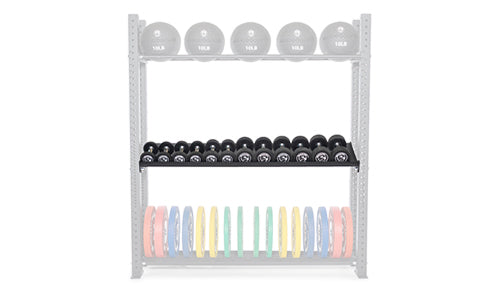 Turn gym chaos into organized bliss. Keep dumbbells and kettlebells neatly arranged, easily accessible, and satisfyingly tidy. Grab the 70” shelf for large-scale storage, the 43” for mid-sized set-ups, or the compact 30” shelf when you’re tight on space but big on organization.