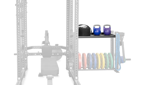 Why buy two shelf types when one can do it all? Mount it flat for your kettlebells & angled for dumbbells. Store your battle rope, lever belt,, and tibialis trainer off the floor. This way, your shed can keep hoarding those gardening tools, leftover lumber, and random buckets of paint in peace.