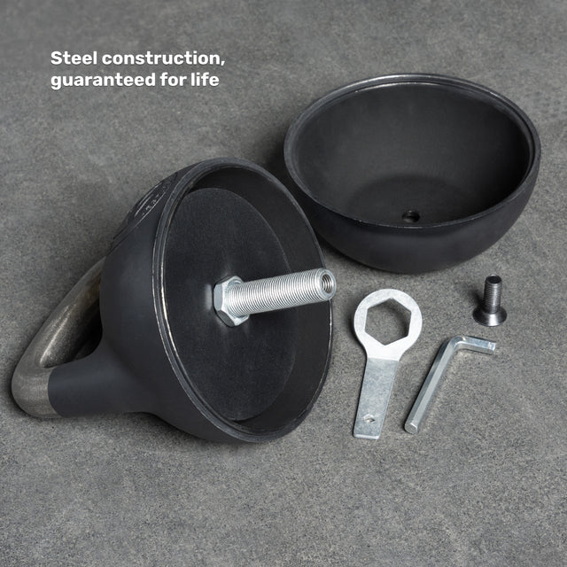 IMPORTANT: The Adjustable Kettlebell is a fantastic tool, but it is not recommended when a fast transition of sizes is needed since changing the weights takes 1-2 minutes. If you need two different weights for swings and overhead work, we recommend getting two adjustable kettlebells — you save 10% when you buy a pair.