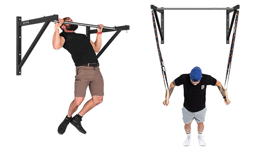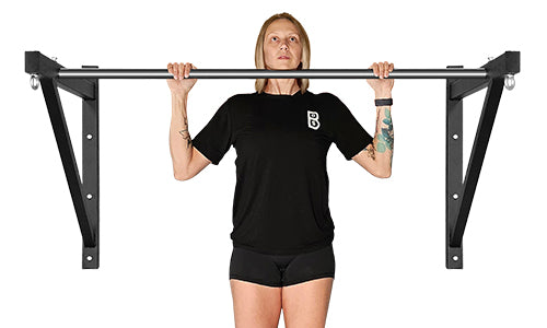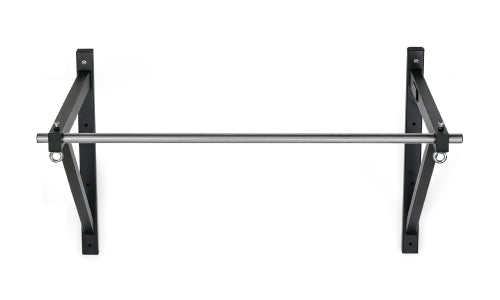 This bare steel pull up bar can be mounted on the ceiling for a vertical drop or directly to your wall with the included mounting hardware. This multipurpose marvel includes two convenient eyelets for mounting our pulley attachment (cable machine exercises, anyone?) or suspension spotter straps (hello ring rows!). The kipping-friendly design leaves plenty of clearance for spirited workouts.