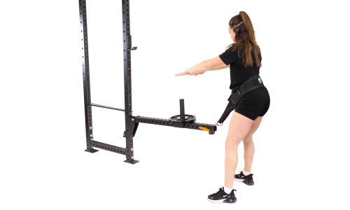 A compact, money-saving, multi-functional Belt Squat / Lever Arms Rack Attachment, ideal for home gym owners who have a tight space (and wallet). Get the same versatility as our beastly Belt Squat Machine at a fraction of the cost and footprint. All components can also be used as standalone pieces of equipment: 2 Lever Arms, 2 Closed Lever Arm Handles, 2 Plate Pegs and a Belt Squat Belt. The belt shifts the load to the hips during squats, putting zero load on your spine and eliminating upper body engagement so you can train around mobility issues and injuries. Attach this to your power rack for rows, high pulls, presses, Romanian deadlifts, and more.