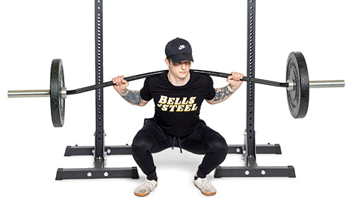 IMPORTANT: The Curved Squat Bar is significantly longer, thicker, and heavier than a typical Olympic barbell. To avoid the bar flipping when racked, sandwich j-cups are strongly recommended.