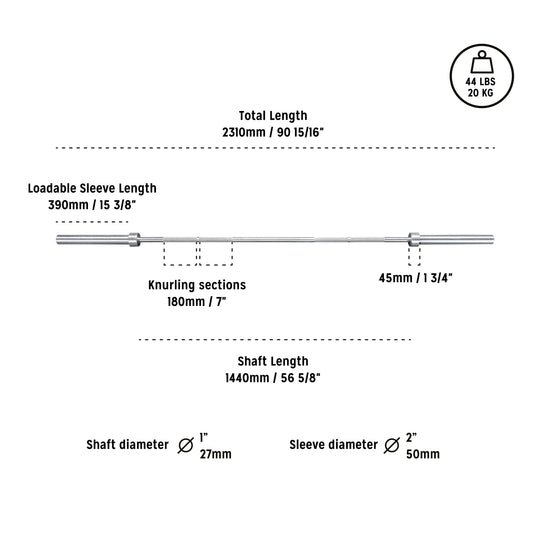 Two millimeters thinner than a traditional power bar, the 27mm shaft increases flex, helping you ramp into heavy weight instead of breaking it all at once.
