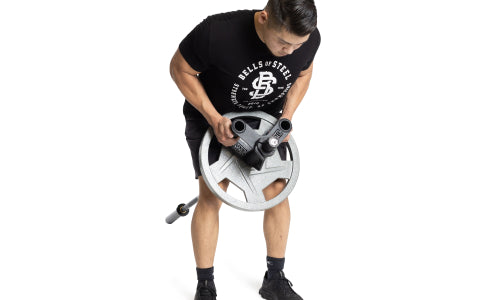 Just slide it over your barbell sleeve and secure the locking mechanism for barndoor back-building t-bar rows.