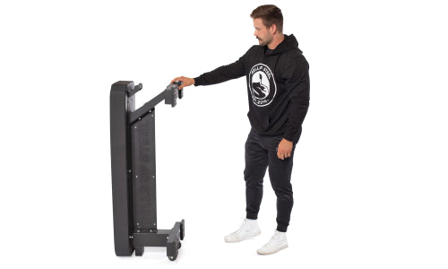 The war between home gym gear and floor space has been raging for decades, but this flat weight bench has wheels, a handle, and a convenient stopper for vertical storage. Victory is yours!