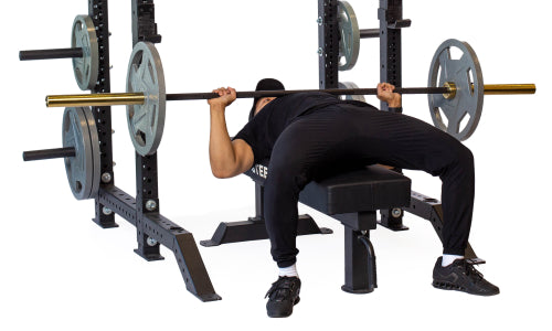 Maximize your gym space! Use both uprights for barbell supersets, or store weight plates on the rear posts with the fronts wide open. Do band-work off the front foot extensions or use them for barbell storage sleeves — the world is your oyster.