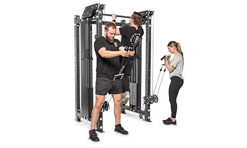 The dual aluminum handles have 6002 bearings, rotating as smoothly as a barbell, and allow bilateral exercises from a single upright. A single cable features a 2:1 pull ratio (10lbs feels like 5lbs), tackling everything from rehab work to isolations. Plus, the cable travel offers uninterrupted focus during sport-specific drills or while getting that joooooicy bicep pump.
