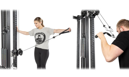 IMPORTANT: Rack must be bolted down or have Front Foot Stabilizers. Minimize single-sided cable use as it accelerates wear on the cable & pulleys and may cause cable twisting.