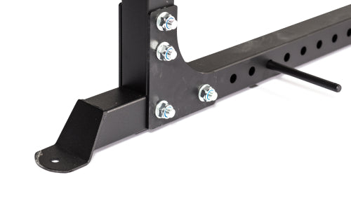 With the flat foot support system, you won't have to bolt your rack into your floor. The larger contact surface area making the rack sturdier for racking/unracking your bar, during pull-ups, and when doing dips.