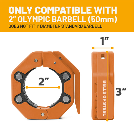 Clamp down on runaway weight plates with the Magnetic Clamp Collars!ย Magnetized for ultra-convenient storage and rubberized to protect your barbell.