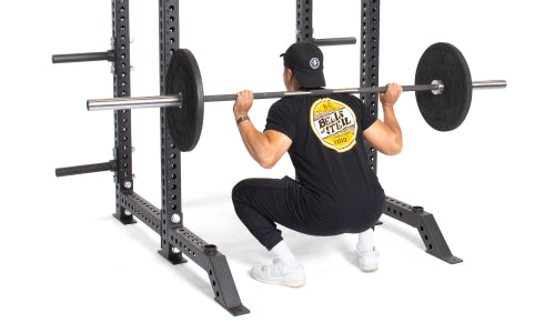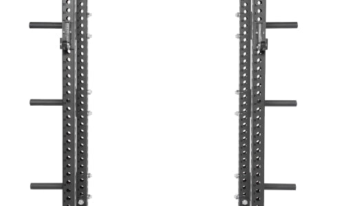 Maximize your gym space! Use both uprights for barbell supersets, or store weight plates on the rear posts with the fronts wide open. Do band-work off the front foot extensions or use them for barbell storage sleeves — the world is your oyster.