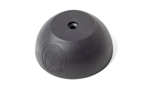 The Plastic Bottom for Adjustable Kettlebell by Bells of Steel is a black, round bowl with a matte finish featuring an embossed logo of a muscular figure and "BELLS OF STEEL EST. 2010." It's designed for single-arm exercises and stands out simply against a plain white background.