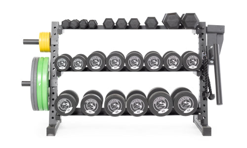 Dumbbells strewn across the floor are a tripping hazard and gobble up floor space like an all-you-can-eat buffet. But with this three-tier dumbbell rack, you can neatly store your 5-50lb or 55-80lb set of Hex Dumbbells and stop playing dodge-the-dumbbell every time you walk into your gym.