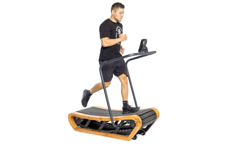 Manual Treadmills have evolved to this curved design. The curved belt is what lets you control the speed; it creates the illusion the treadmill is motorized. All the benefits of motorized treadmill without the failure of electrical and electronic component failure.