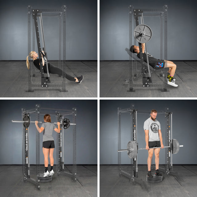 • Transforms your rack, not your floor plan → Attaches directly to compatible power racks, adding guided pressing and squatting without requiring a dedicated Smith machine footprint or separate station.