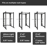 Fits Hydra, Manticore, our 84" Light Commercial racks, and most 2.3"–3" non-BoS racks with 5/8" or 1" holes—no proprietary lock-in required. If your rack is at least 72" tall and 47"–49" wide, this attachment integrates cleanly