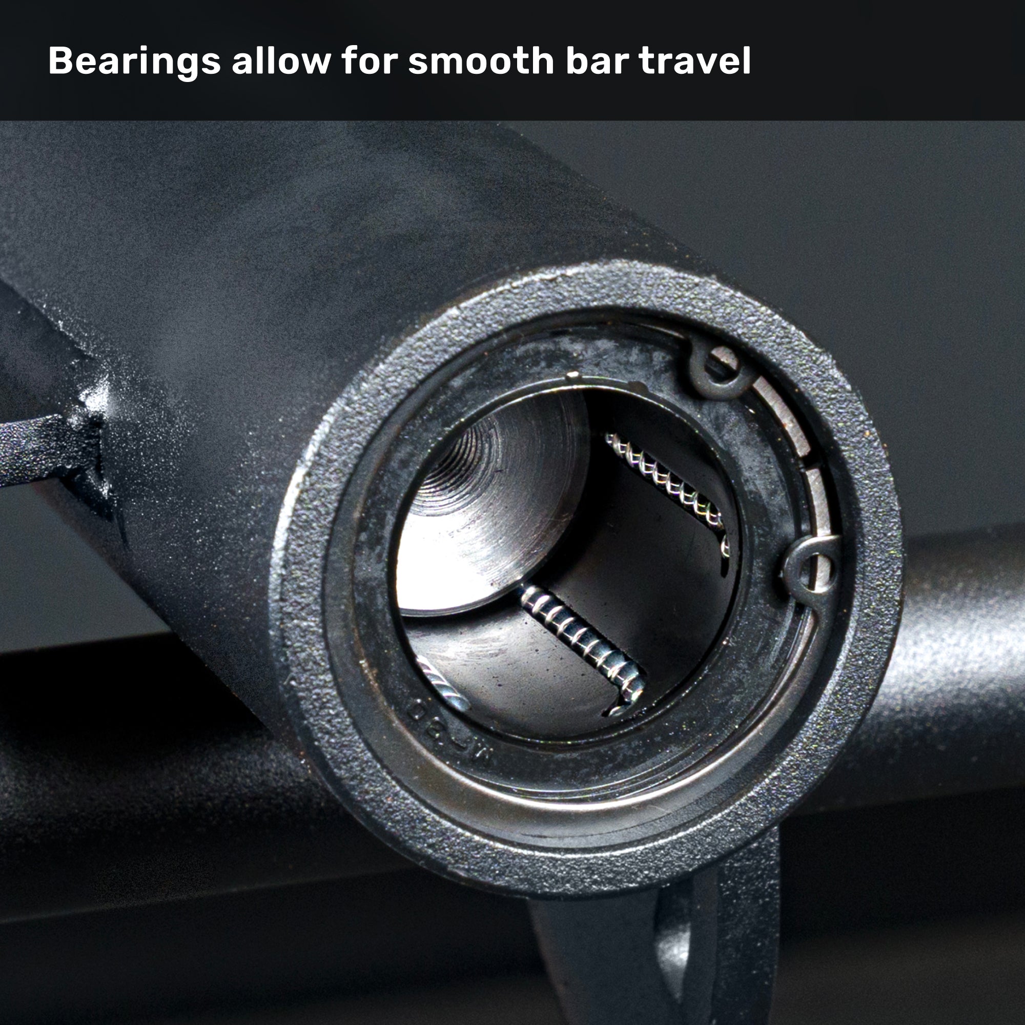 The precision-engineered linear bearings deliver a smooth, consistent bar path that rivals full standalone Smith machines. Once installed, the travel feels stable and controlled—ideal for both strength and accessory work.