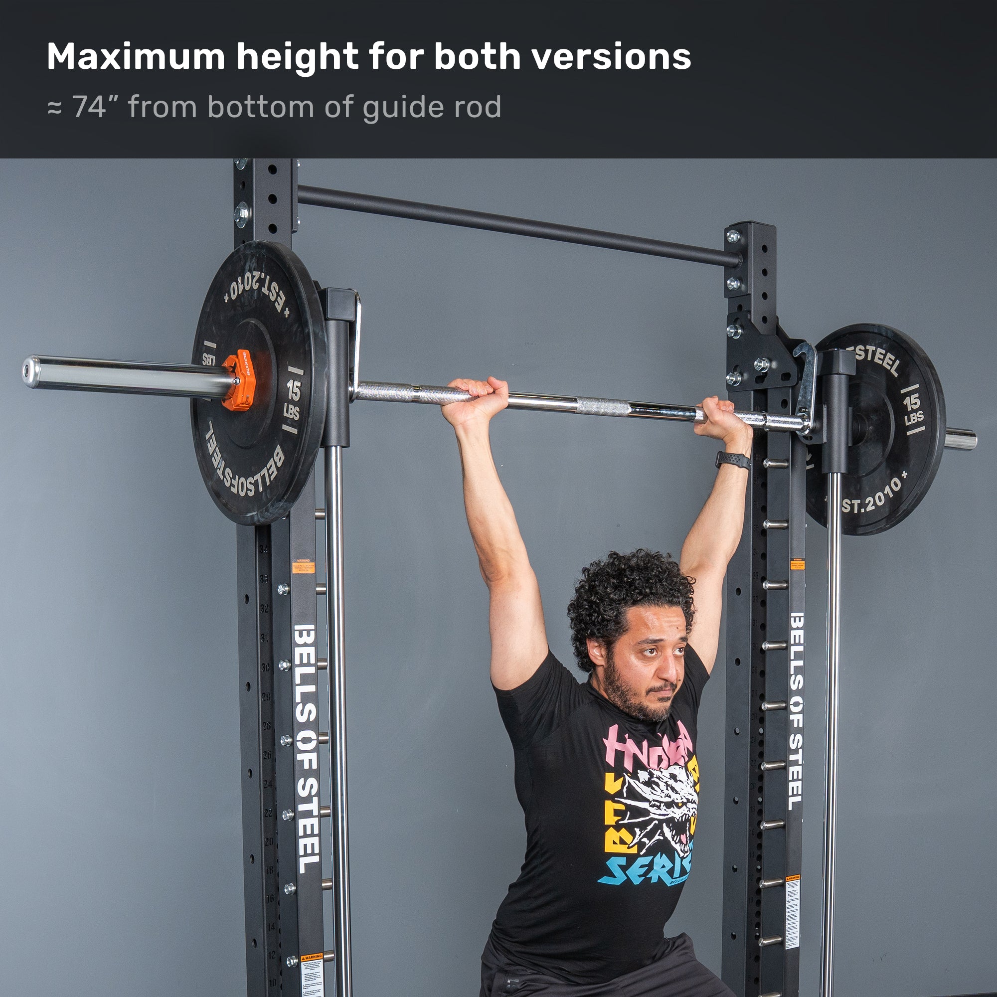 Choose between a built-in Smith bar or the BYOB (Bring Your Own Barbell) variant, which lets you use your preferred barbell inside the guided Smith track. Keep the knurling, shaft diameter, and feel you trust—without giving up the safety and control of a Smith machine.