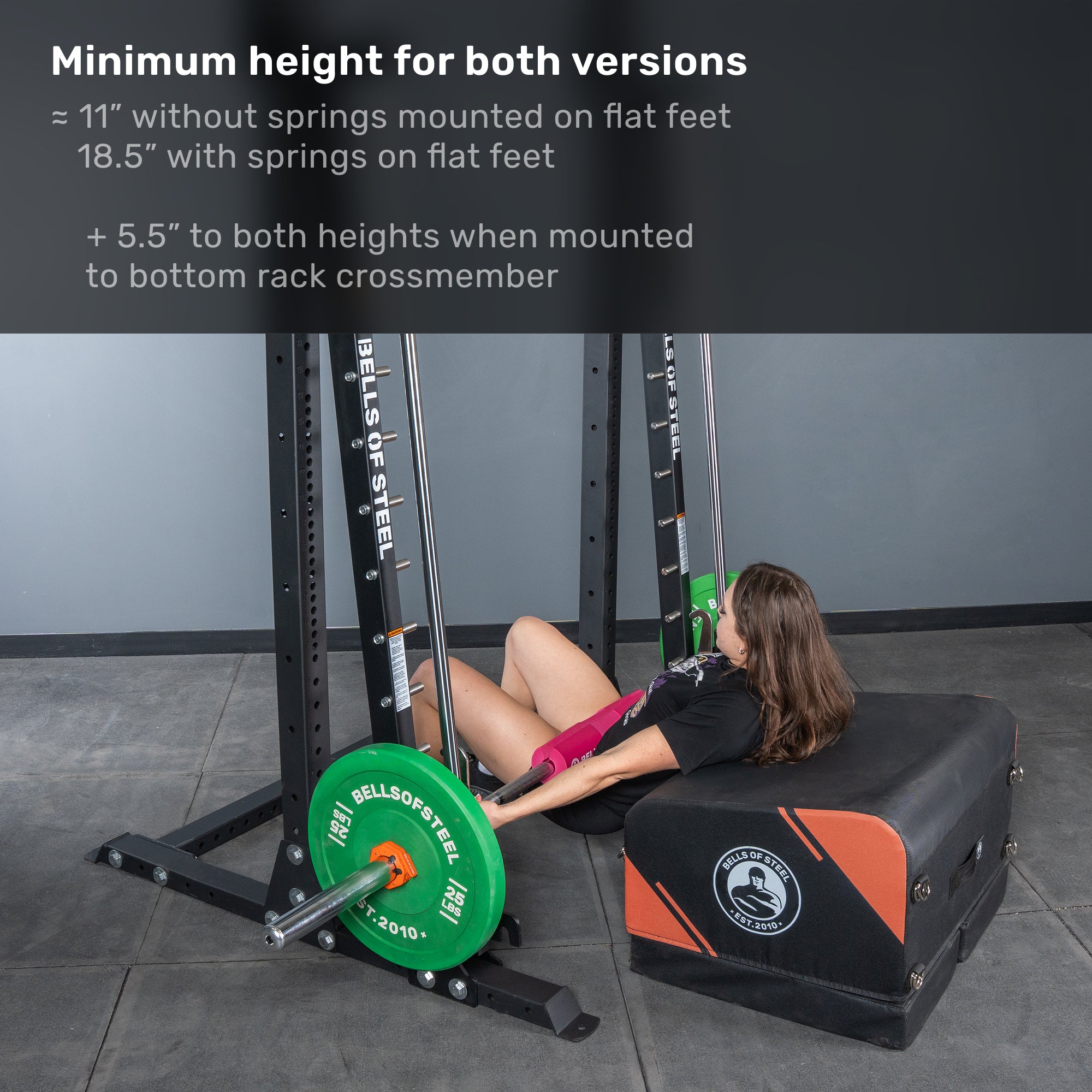 Yes. The Bells of Steel Smith Machine is designed for garage gyms and home gym setups that want the safety and stability of a guided bar system. The fixed bar path and built-in safety features allow lifters to train solo with more confidence compared to a traditional free-weight barbell setup.