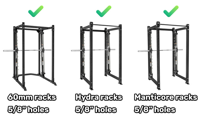 The Smith Machine is designed to work with many power racks, not just Bells of Steel models. It’s compatible with most racks that meet the following requirements: upright tubing between 2.3" × 2.3" and 3" × 3" (58–76 mm), uprights 72" (183 cm) tall or taller, rack width of 47" or 49" (119–124 cm), and side holes sized for 5/8" or 1" hardware. If you're concerned about compatibiltiy, reach out to our team and we'll help you out.