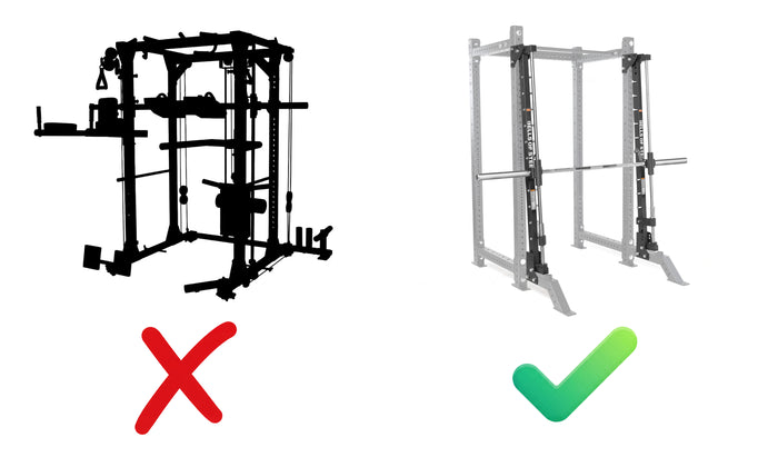 • Zero setup between exercises → Go from squats to bench to rows in seconds on the Smith attachment, then swing out to free weight training on your rack, it's like having two stations in one footprint.