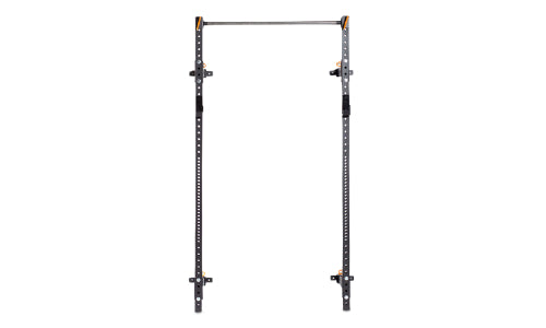 A simple hinge and pin system allows you to quickly remove the pull-up bar after a workout, then fold the sides of the squat rack inwards against the wall to open up a massive amount of space. Superior 1" spacing through the bench and pull zone, and 2" spacing above and below allow you to select the perfect height for your j-cups, for precision lift-offs that can make the difference between a good rep and a superb rep.
